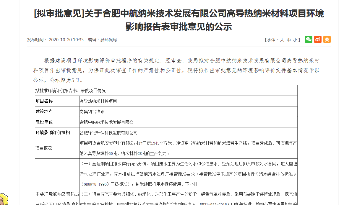 中航纳米技术发展有限公司高导热纳米材料项目环境影响评价工程